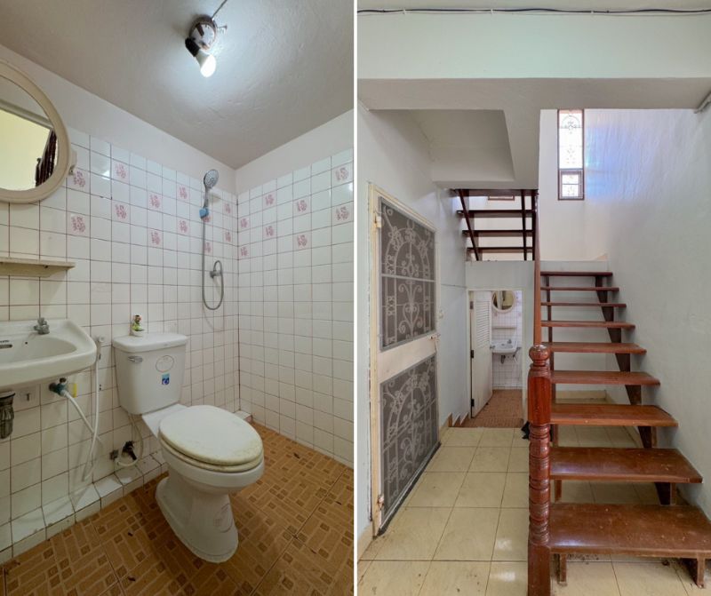 • พื้นชั้นล่าง และชั้นบนปูกระเบื้อง