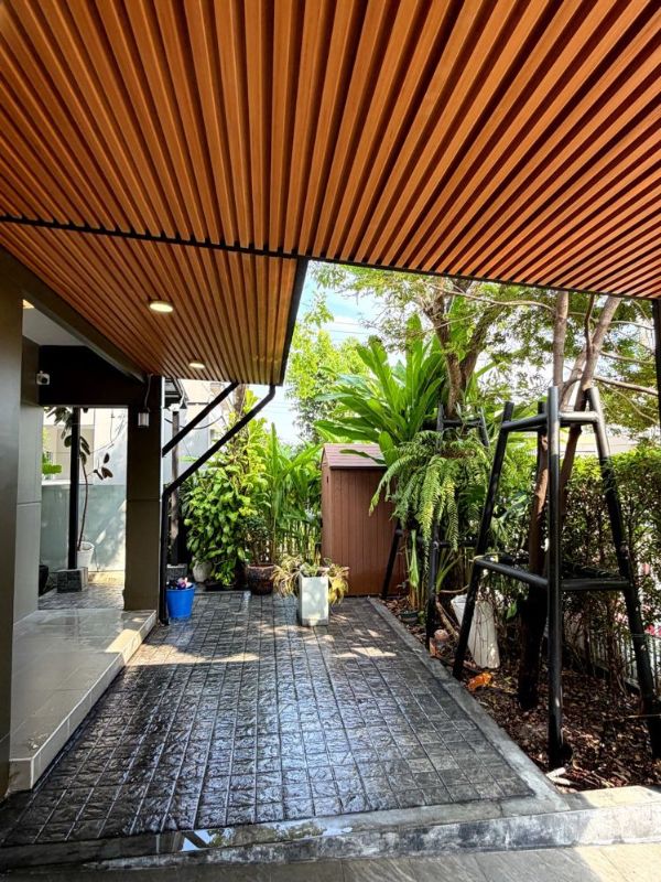 - หลังคาโรงจอดรถ และหลังคาพื้นที่หน้านบ้าน ฝ้าไม้ระแนงตกแต่ง