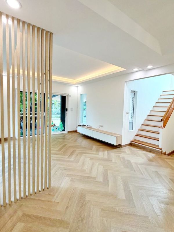 - ปูพื้นกระเบื้องยาง spc ลายไม้ ทั้งหลังชั้นบนและล่าง