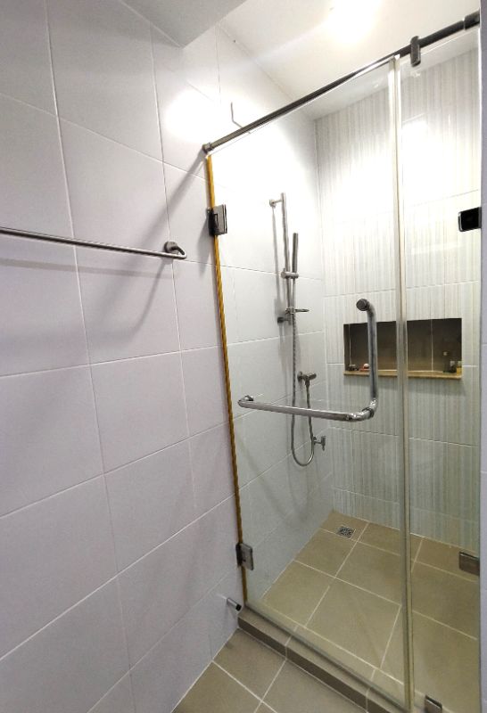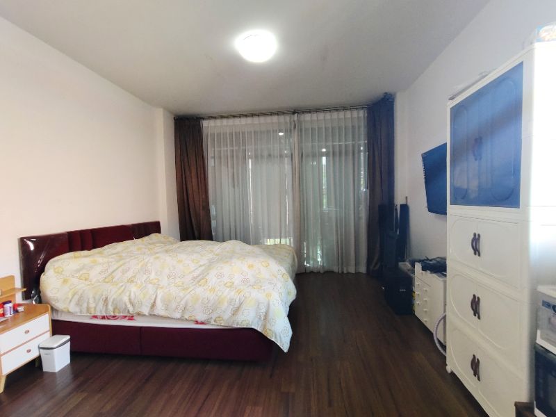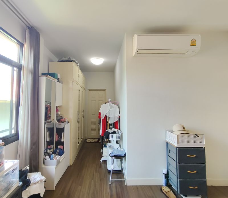 - ระเบียงห้องนอนใหญ่ต่อเติมห้องกระจกกันแสง ใช้งานเปิด/ปิด เก็บของเพิ่มได้