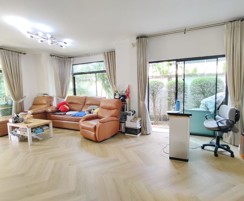 - ภายในพื้นชั้นล่างปู SPC ลายก้างปลาของ Rococo