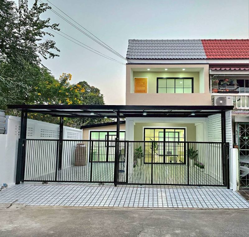 ทาวน์เฮ้าส์ 2 ชั้น หลังริม มีพื้นที่ด้านข้าง หมู่บ้านติดถนนกาญจนาฯ บางใหญ่