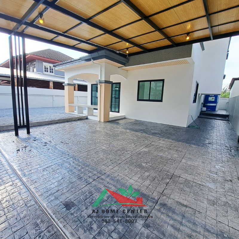 - ต่อเติมหลังคาโรงจอดรถ ปูพื้นสแตมป์คอนกรีต