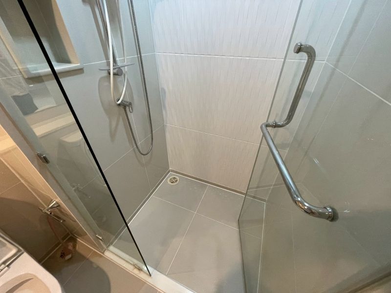 - กระจกกั้นฉากอาบน้ำ (แบ่งโซนเปียกโซนแห้ง)