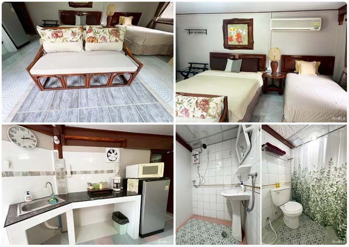 - ห้องพัก 2 : ขนาด 1 ห้องนอน 2 เตียง ห้องนั่งเล่น เคาน์เตอร์ครัว