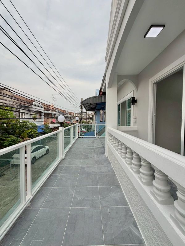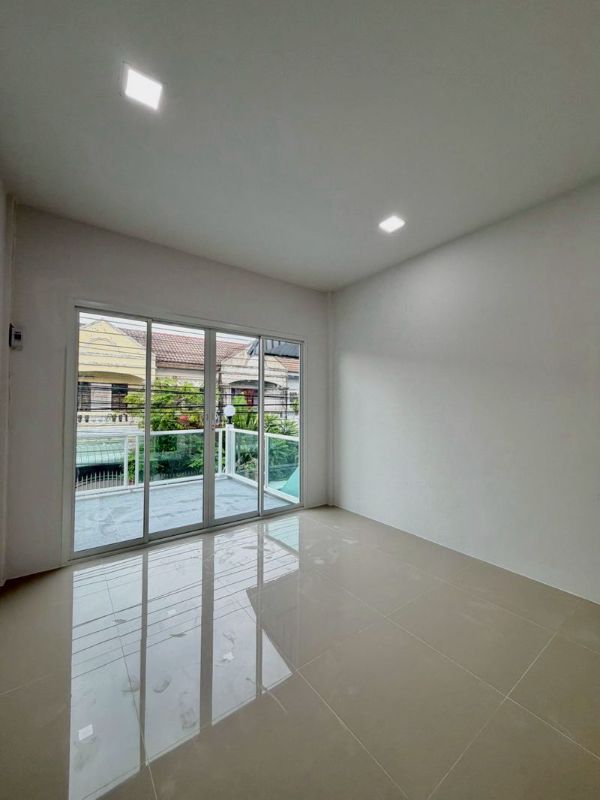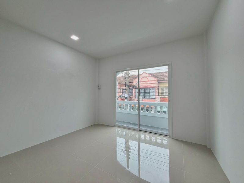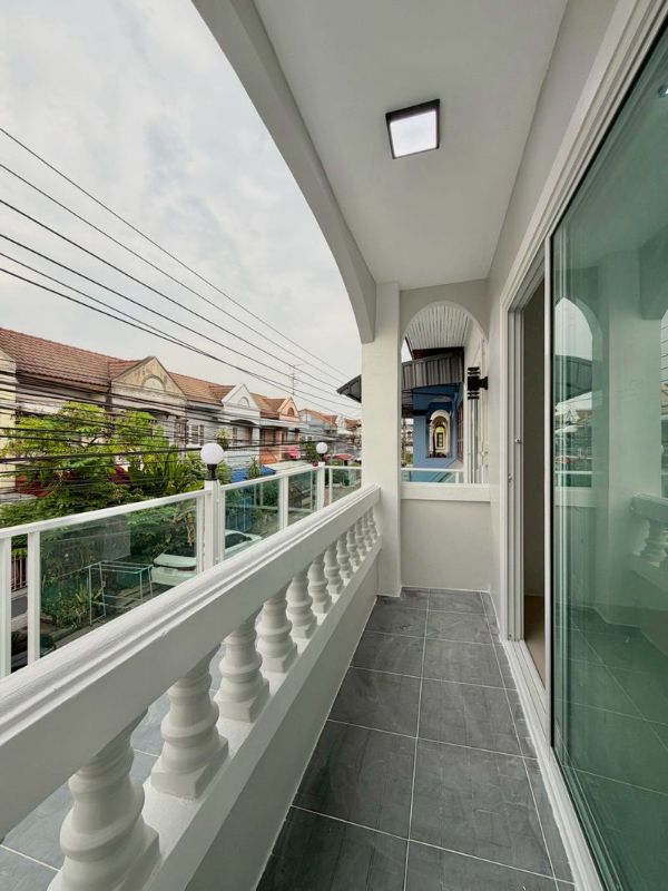 ทาวน์เฮาส์ 2 ชั้น ตกแต่งใหม่พร้อมอยู่ มีระเบียงด้านหน้า ทำเลดี น้ำไม่เคยท่วม หมู่บ้านดีมากลอกท่อทุกปี